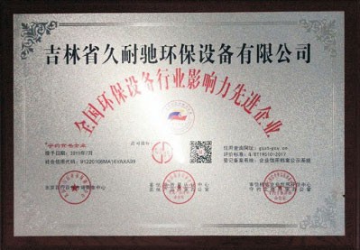 证书编号: 1007 证书名称: 全国环保设备行业影响力先进企业 发证机构: 中国环保设备行业 生效日期: 2021年01月22日 截止日期: 2031年01月22日 认证简介: 吉林省久耐驰环保设备有限公司荣获全国环保设备行业影响力先进企业